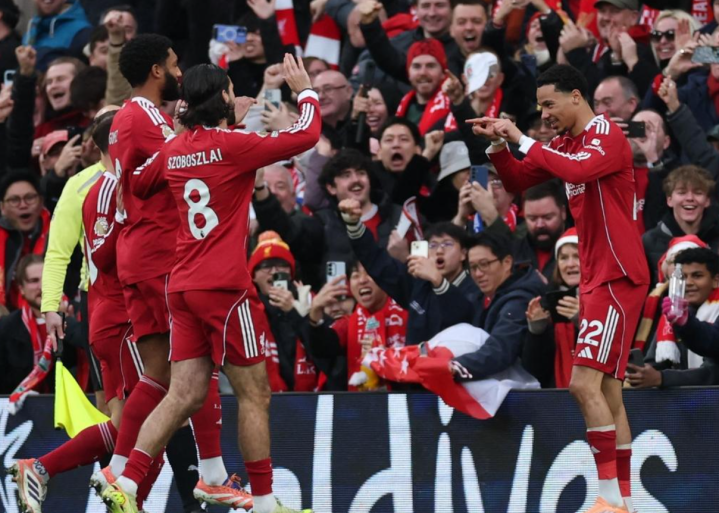 利物浦排出4231阵型。埃基蒂克顶在最前面。索博斯洛伊、麦卡利斯特和维尔茨的进攻组合联袂出击。赫拉芬贝赫和琼斯搭档双后腰。乔-戈麦斯、科纳特、范戴克和凯尔凯兹4后卫首发出战。阿利松担任首发门将。伊萨克、萨拉赫和小基耶萨坐在替补席待命。